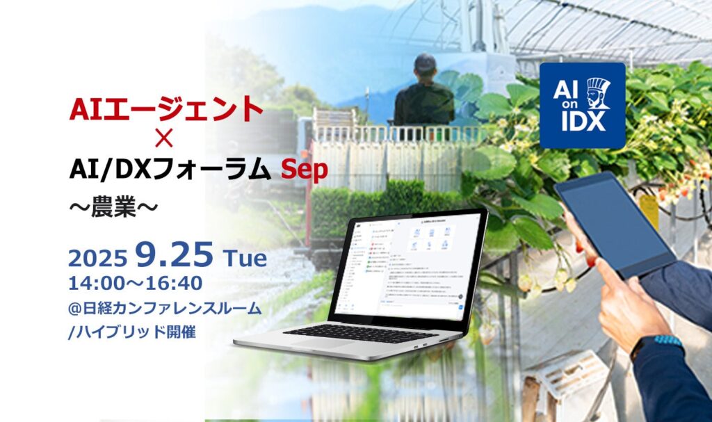 AI農業、今がラストチャンス — 「AIエージェント×AI/DXフォーラムSep~農業~」開催 AI農業、今がラストチャンス — 「AIエージェント×AI/DXフォーラムSep~農業~」開催 企業データとAIの利活用を手掛けるAIデータ株式会社が、2025年9月25日に「AIエージェ... -